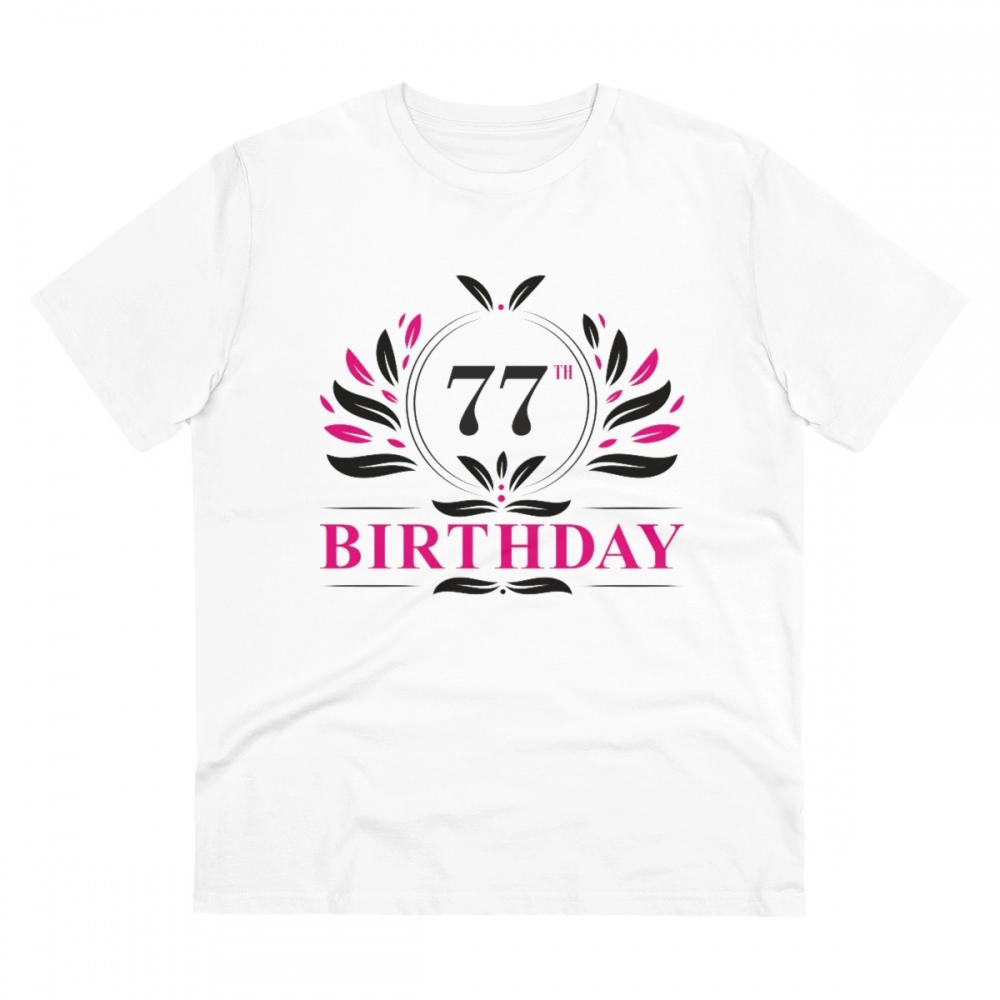 Generic Men’s PC Cotton 77th Birthday Printed T Shirt (Color: White, Thread Count: 180GSM)
