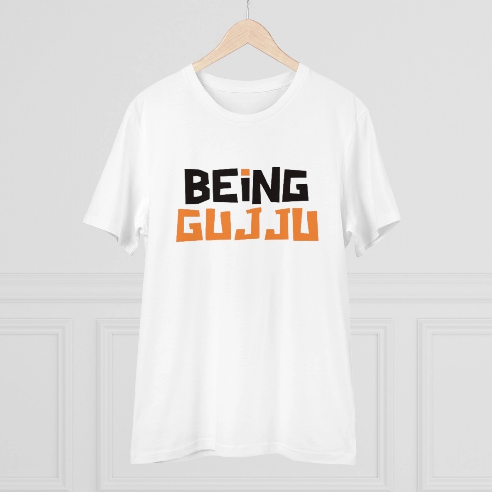 Men’s PC Cotton Being Gujju Printed T Shirt (Color: White, Thread Count: 180GSM)