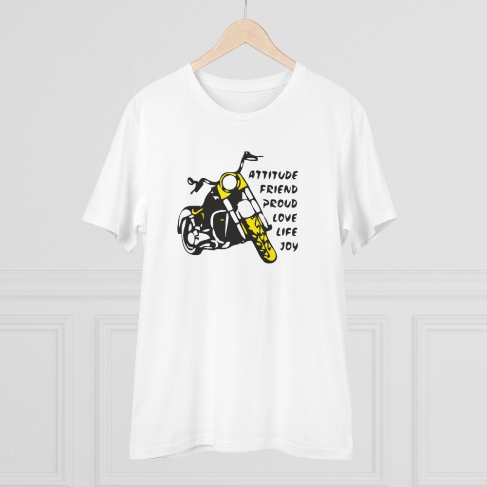 Men’s PC Cotton Bike Ride Design Printed T Shirt (Color: White, Thread Count: 180GSM)