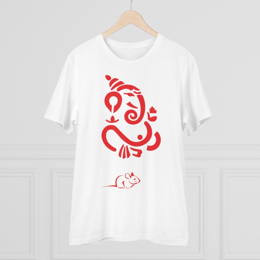 Men’s PC Cotton Ganesh Printed T Shirt (Color: White, Thread Count: 180GSM)