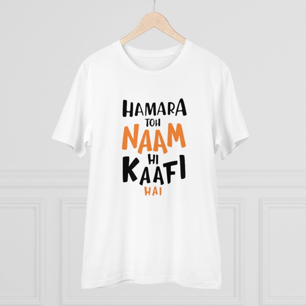 Men’s PC Cotton Hamara To Name Hi Kaafi Hai Printed T Shirt (Color: White, Thread Count: 180GSM)