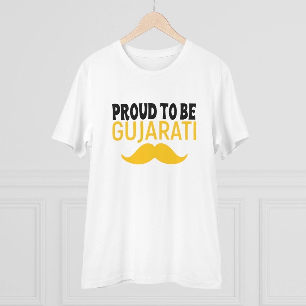 Men’s PC Cotton Proud To Be Gujarati Printed T Shirt (Color: White, Thread Count: 180GSM)