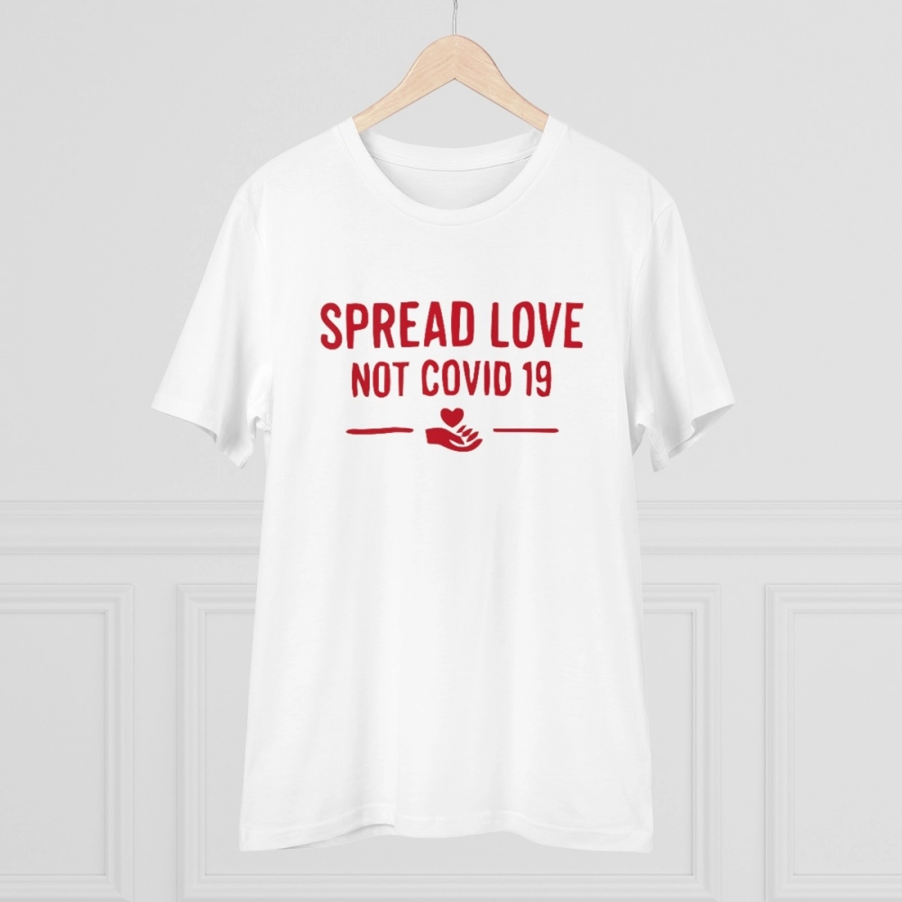 Men’s PC Cotton Spread Love Not Covid 19 Printed T Shirt (Color: White, Thread Count: 180GSM)