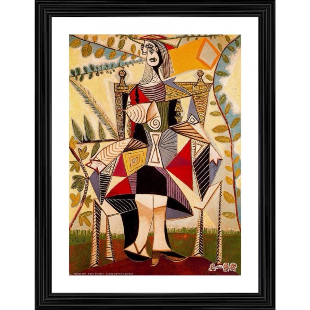 Generic Seated Woman in a Garden 1938 Painting With Wood Photo Frame (Multicolor)