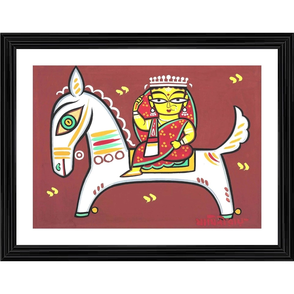Woman on the Horse Painting With Wood Photo Frame