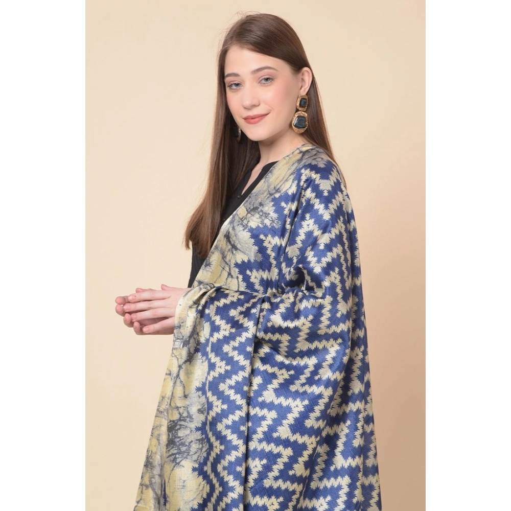 Generic Women’s Art Silk Printed Dupatta (Blue, Length: 2.25 to 2.50 Mtr)