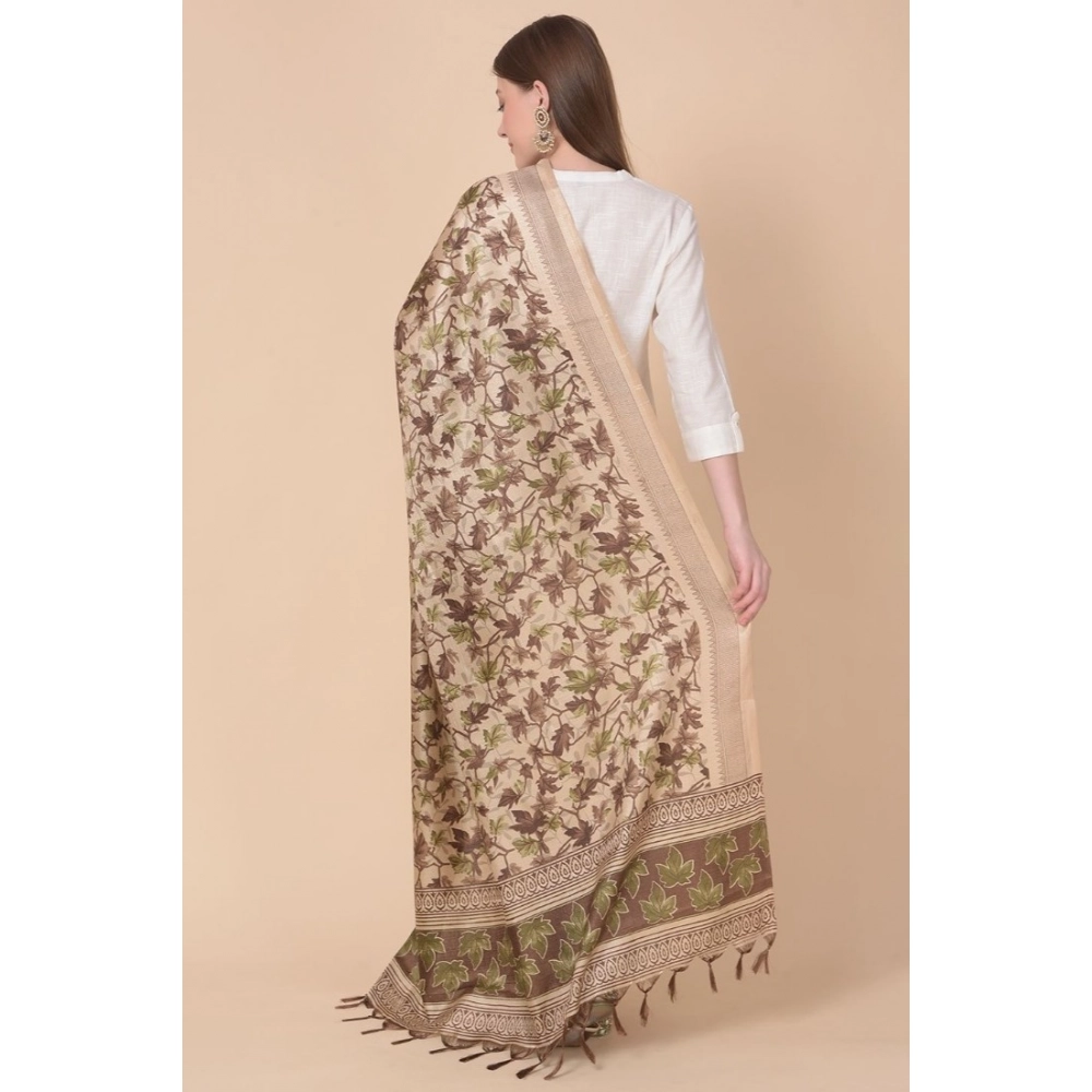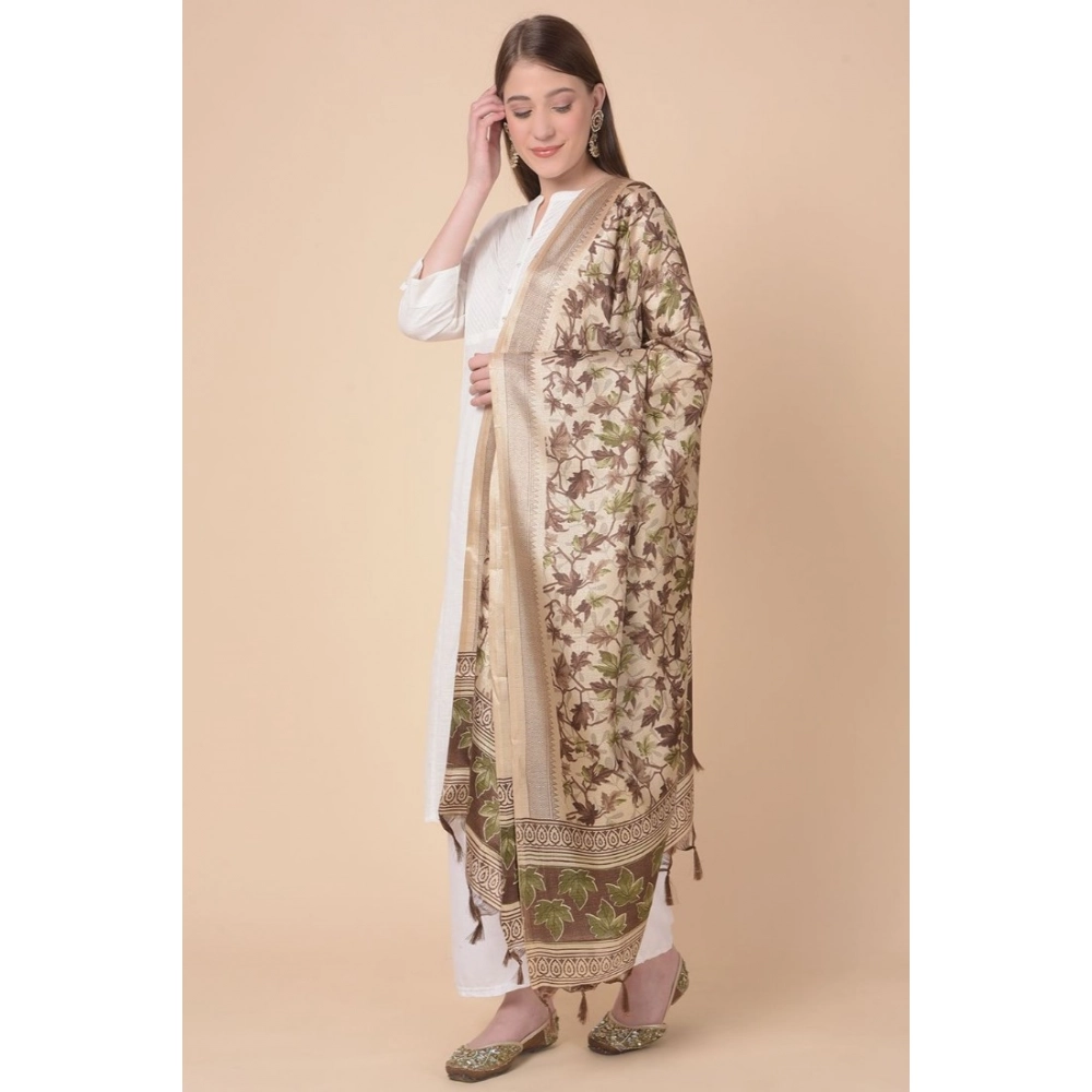 Generic Women’s Art Silk Printed Dupatta (Gold, Length: 2.25 to 2.50 Mtr)