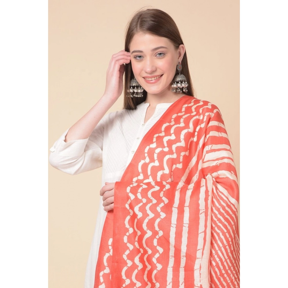Generic Women’s Art Silk Printed Dupatta (Orange, Length: 2.25 to 2.50 Mtr)