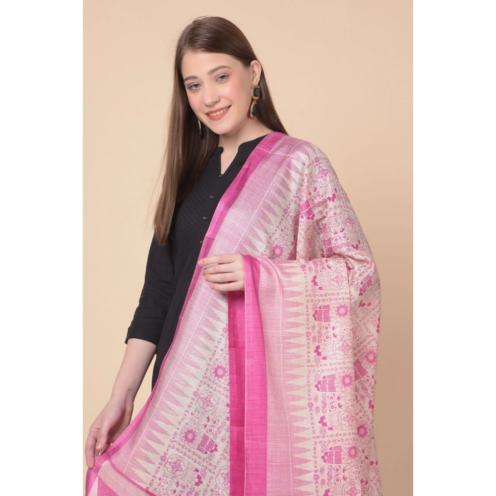 Generic Women’s Art Silk Printed Dupatta (Pink, Length: 2.25 to 2.50 Mtr)