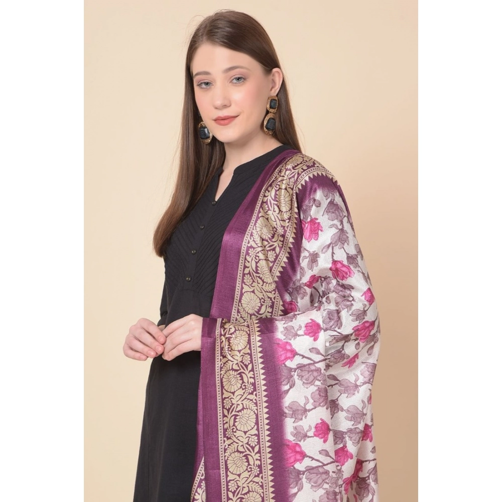 Generic Women’s Art Silk Printed Dupatta (Purple, Length: 2.25 to 2.50 Mtr)