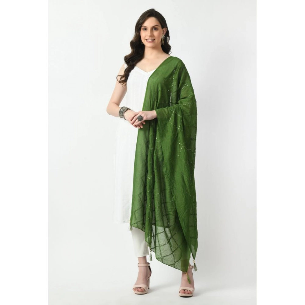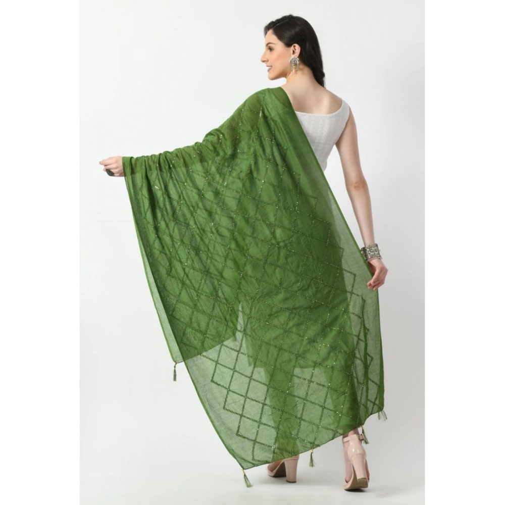 Generic Women’s Chanderi Self Design Dupatta (Mehandi, Length: Free Size)
