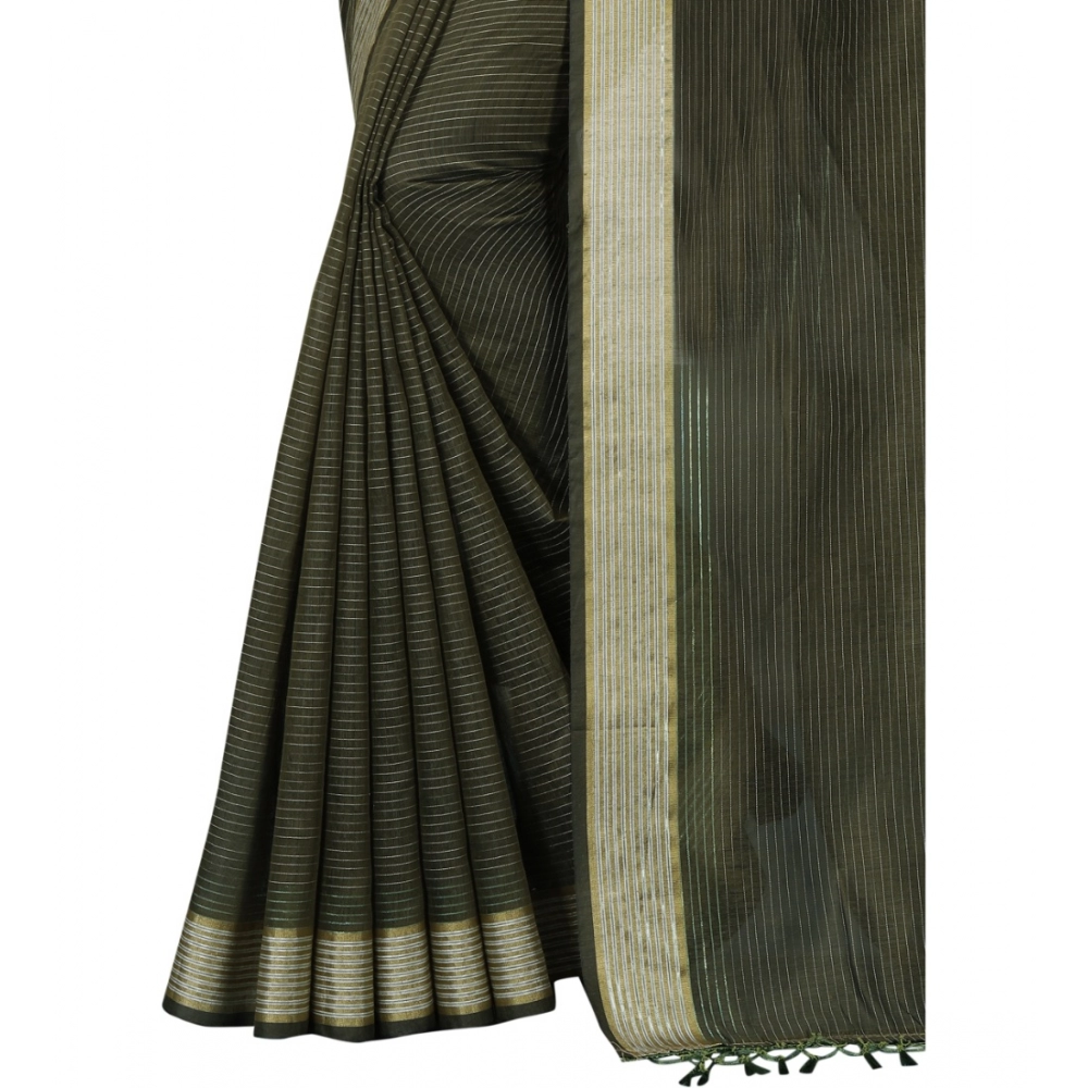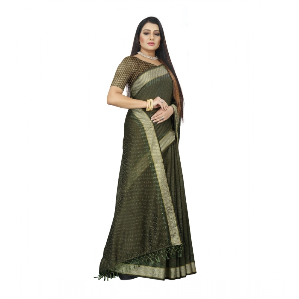 Generic Women’s Cotton Blend Solid/Plain Saree With Unstitched Blouse 5.5Mtr (Green)