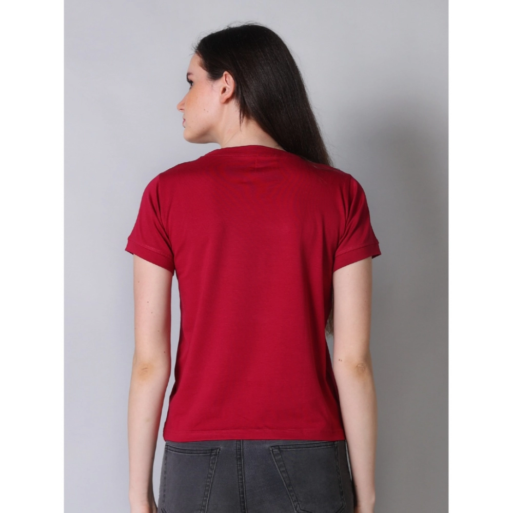 Generic Women’s Cotton Blended Solid Round Neck Half Sleeve T-Shirt (Maroon)