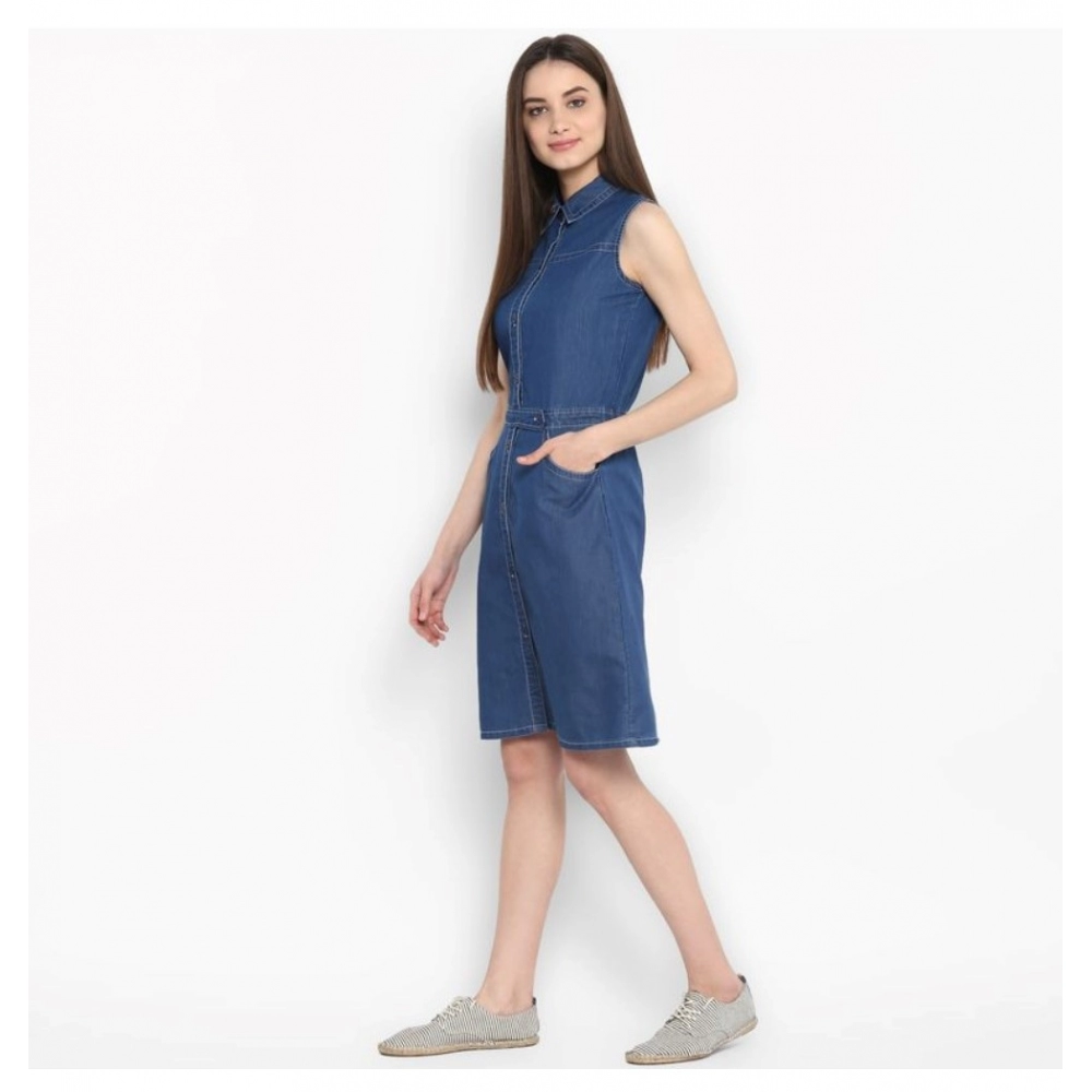 Women’s Denim Solid Sleeveless Above Knee Dress