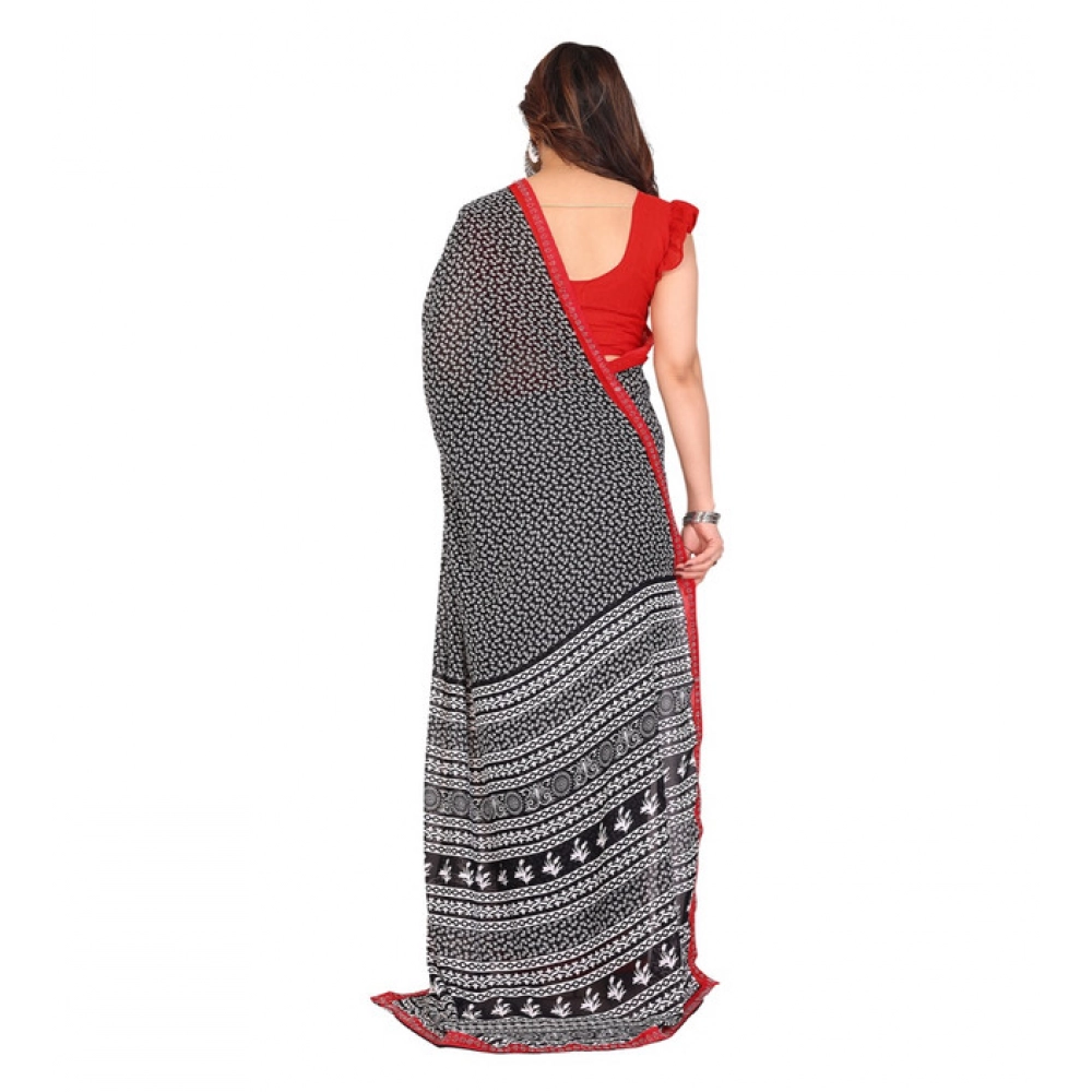 Generic Women’s Georgette Printed Saree With Unstitched Blouse 5.5Mtr (Black)