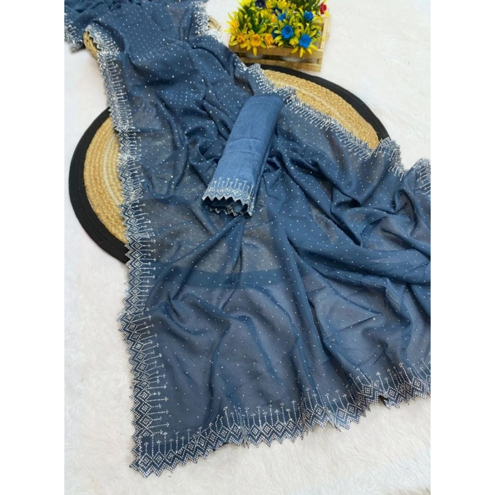 Women’s Georgette Stone Work Saree With Unstitched Blouse 5.5Mtr