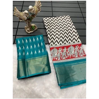 Women’s Linen Cotton Printed Saree With Unstitched Blouse 5.5Mtr