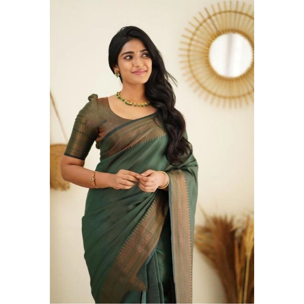 Generic Women’s Litchi silk Printed Saree With Unstitched Blouse (Green)