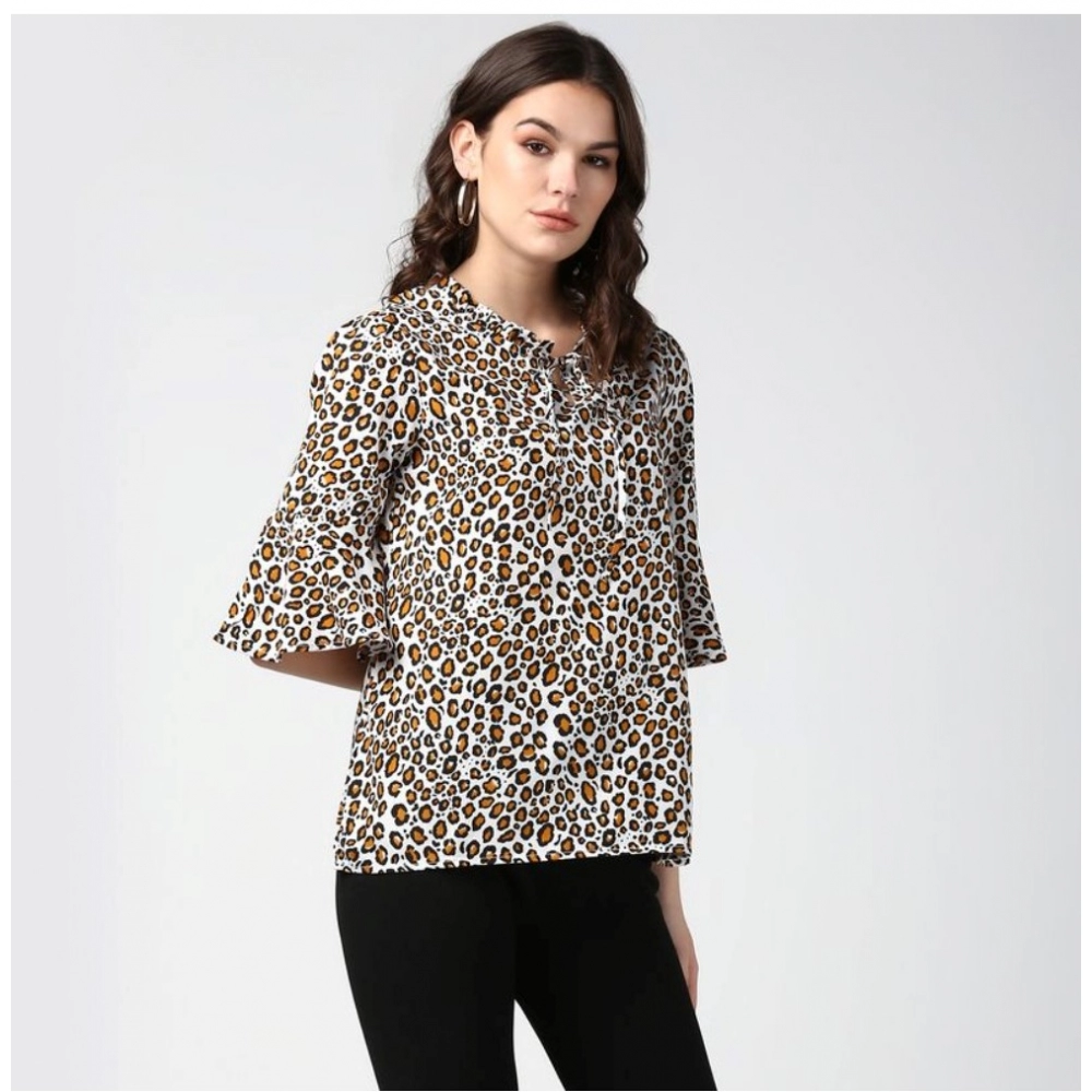 Generic Women’s Polyester Animal Print Bell Sleeve Top (Orange – Black)
