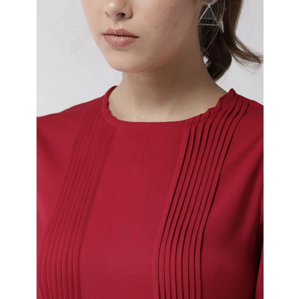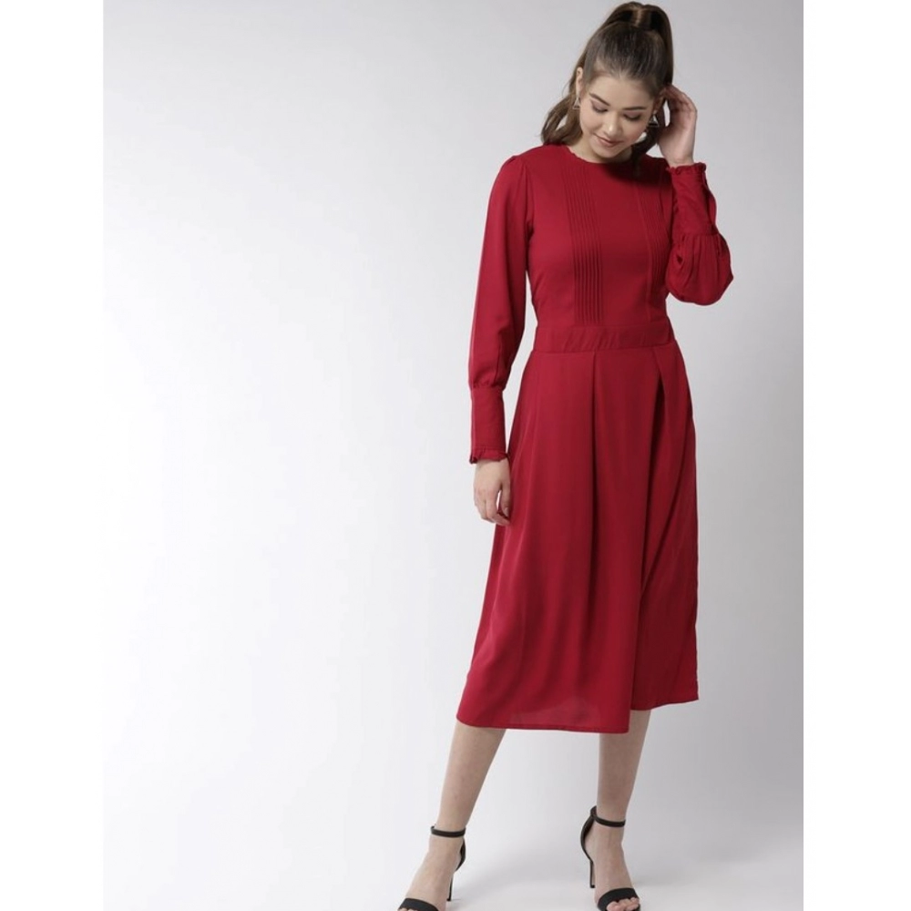 Women’s Polyester Pintuck Long Sleeves Below Knee Dress