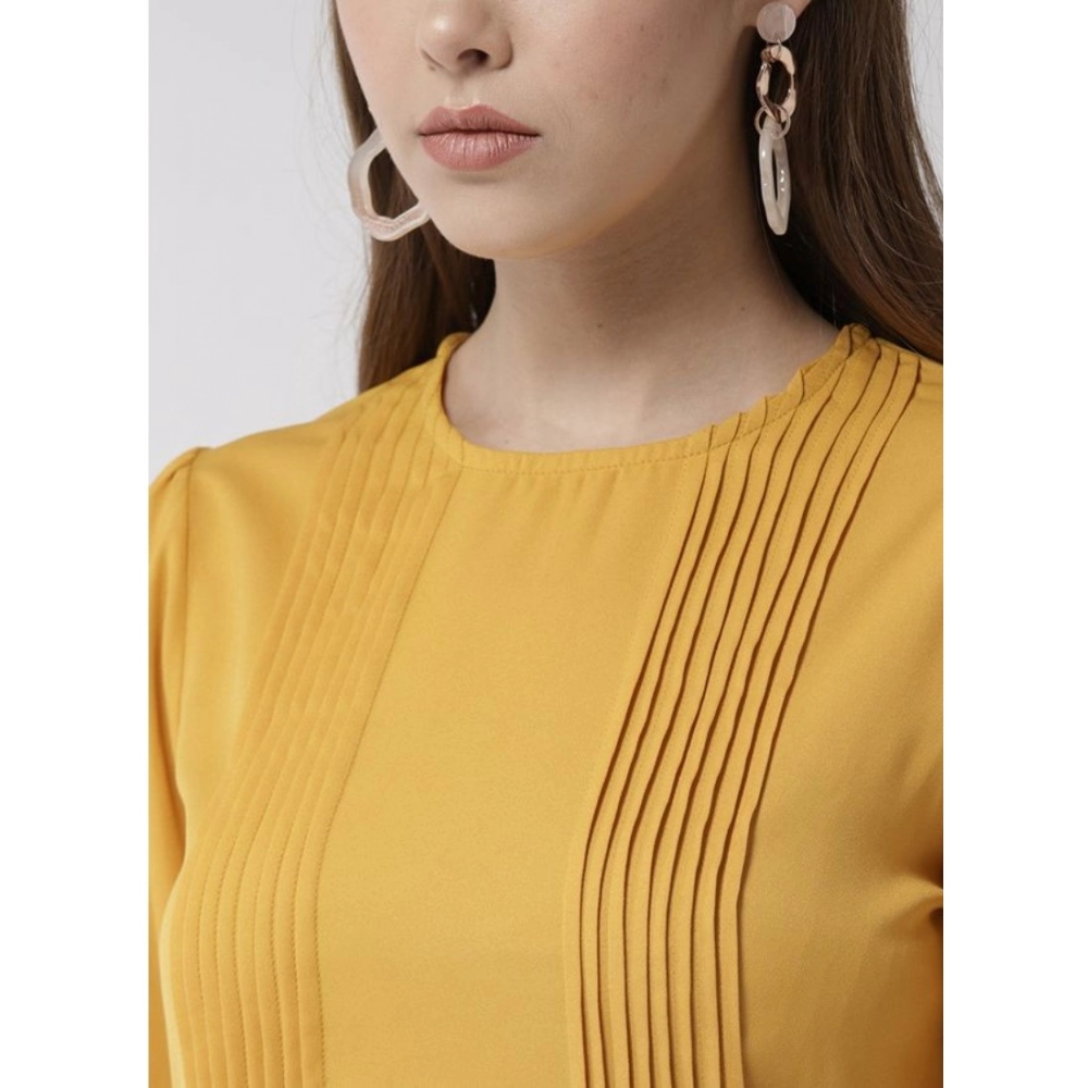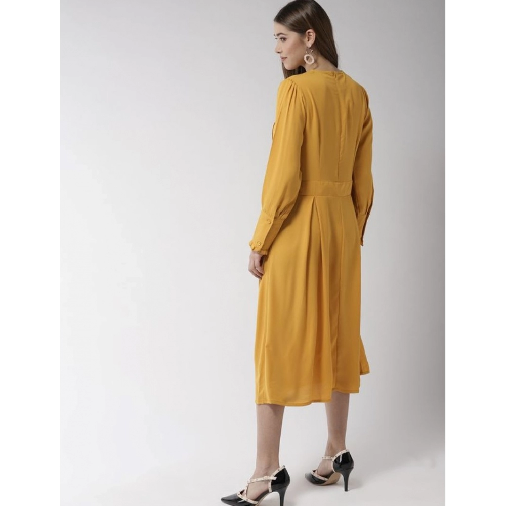 Women’s Polyester Pintuck Long Sleeves Below Knee Dress
