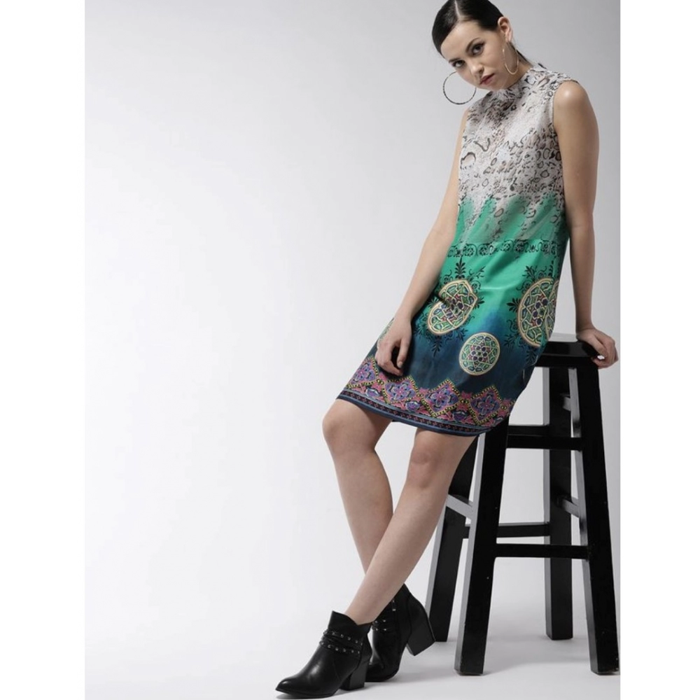 Women’s Polyester Printed Sleeveless Above Knee Dress