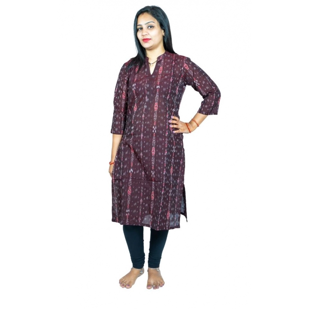 Generic Women’s Sambalpuri Certified Handloom Pure Cotton Straight Kurti (Brown)