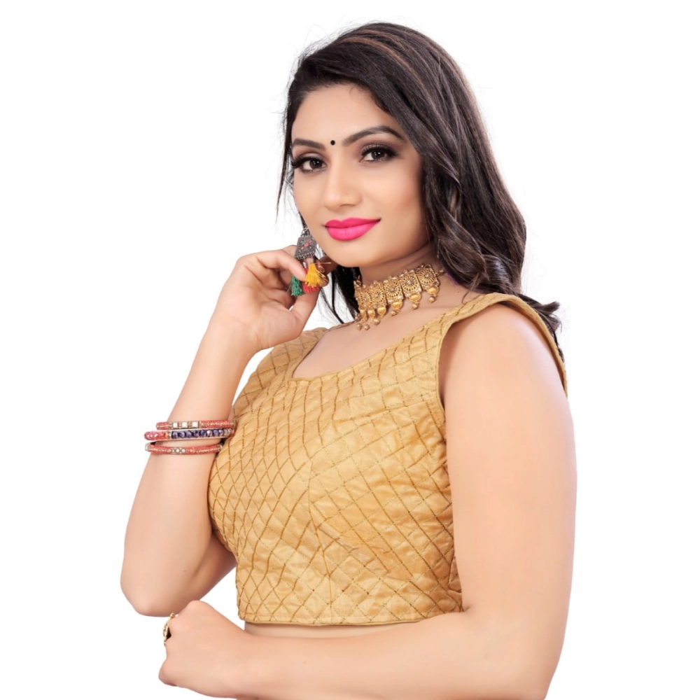 Generic Women’s Satin Embroidery Readymade Blouse (Beige, Size: Free Size)