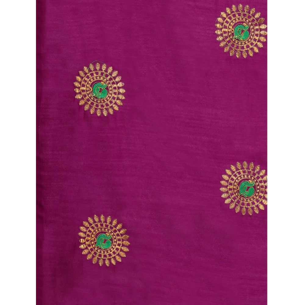 Women’s Silk Blend Embroidered Saree With Unstitched Blouse
