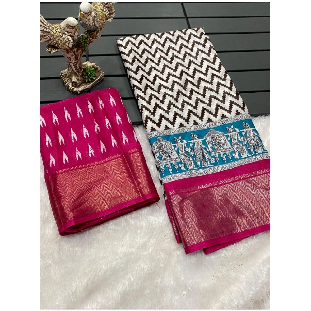 Women’s Soft Dola Cotton Kalamkari Printed Saree With Unstitched Blouse